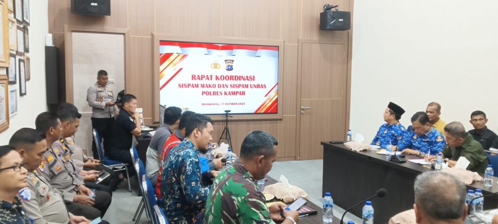 KAMPAR(kompassindonesai.my.id) – Menjelang musim hujan tahun 2025, Polres Kampar menggelar Rapat Koordinasi Kesiapsiagaan Menghadapi Potensi Bencana Banjir di wilayah Kabupaten Kampar, Jumat (17/10/2025).