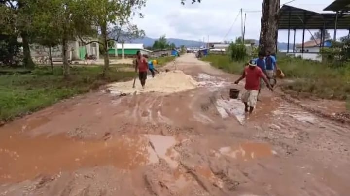 “Kalau hujan, jalan becek dan berlubang. Kadang mobil kami harus putar balik karena tidak bisa lewat. Padahal ini jalan utama ke pelabuhan,” ujarnya.