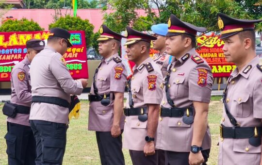 Kapolres Pimpin Sertijab Kabag Ren dan Lima Kapolsek Jajaran Polres Kampar