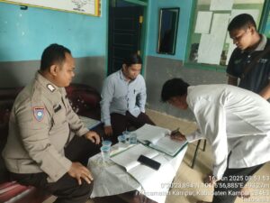 KAMPAR(kompassindonesia.my.id) , – Polri kembali menunjukkan kepeduliannya terhadap pendidikan anak bangsa. Dalam rangka memperingati Hari Bhayangkara ke-79, Polres Kampar melalui Bhabinkamtibmas Desa Ranah Singkuang memberikan bantuan sosial berupa uang sekolah kepada pelajar keluarga kurang mampu. Penyerahan bantuan dilakukan pada Senin (16/6/2025) pukul 08.00 WIB di MTs Muhammadiyah Desa Penyasawan, Kecamatan Kampar, Kabupaten Kampar.