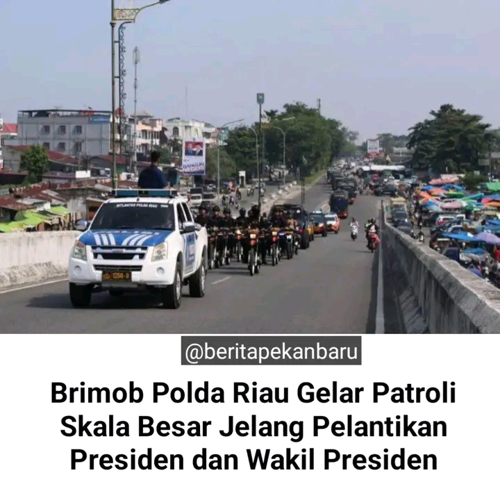 Personel Sat Brimob dan jajaran Polda Riau berkeliling Kota Pekanbaru untuk memastikan situasi damai dan kondusif jelang pelantikan, Sabtu, 19 Oktober 2024.