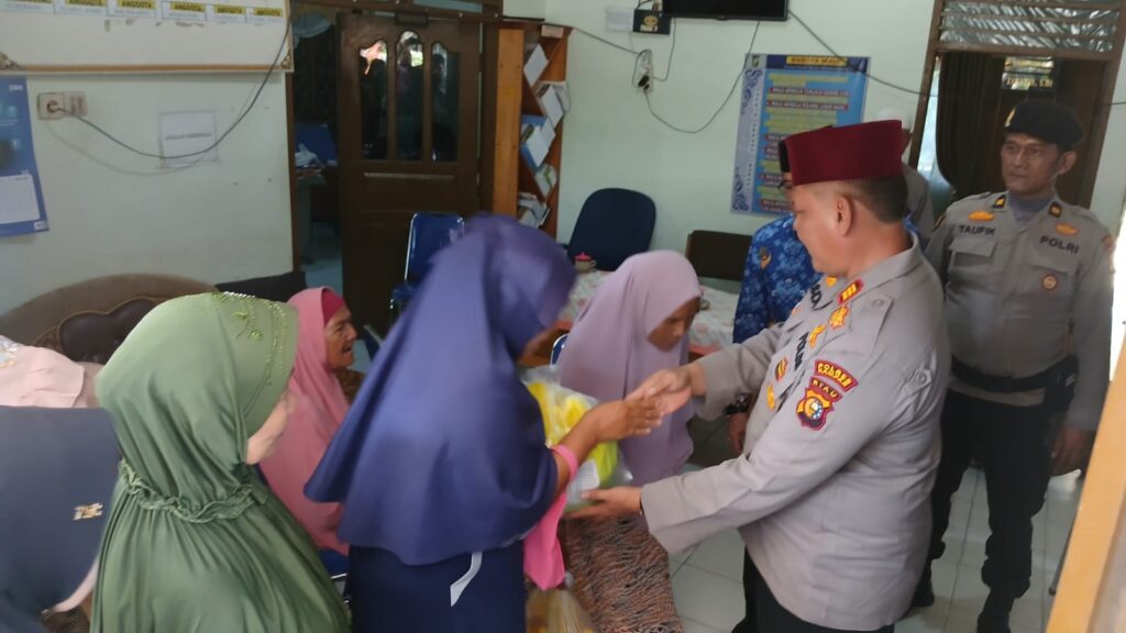 Selain memberikan bantuan, Kapolsek juga menyampaikan pesan-pesan Kamtibmas kepada masyarakat.
